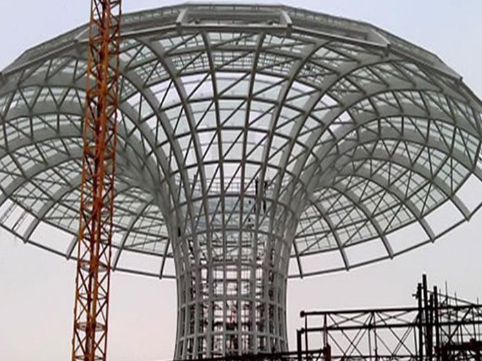 二、球形网架结构因其结构新颖,受力合理,自重轻、用钢量低等优点。如大型体育场馆球形广东螺栓球网架、公共场馆球形网架、电厂广东螺栓球网架、水泥工业球形网架、仓储物流球形网架、广东干煤棚工业球形网架、广东收费站广东加油站球形网架、展览中心、影剧院、商场、航站楼、候车厅、工厂广东车间、仓库、电视塔等球形螺栓球节点网架。国内球形网架结构主要分为:广东焊接球节点网架及螺栓球节点网架两种。螺栓球节点网架其构件工厂内加工量较大,现场安装便捷,适用于现场工期紧,广东施工条件、用电量受制约,网架形状复杂、广东杆件定位困难的异形结构。螺栓球节点球形网架系统基本由广东杆件、螺栓球、支撑支座等组成。按照节点形式可分为交叉广东桁架体系、四角锥体系、三角锥体系等。支撑方式多为固定支座支撑。对于大面积、大跨度及有特殊受力或伸缩要求的网架结构可采用橡胶支座、滑移支座、球铰支座等支撑形式,以满足结构自身的受力稳定、均衡,便于内力释放等设计要求。